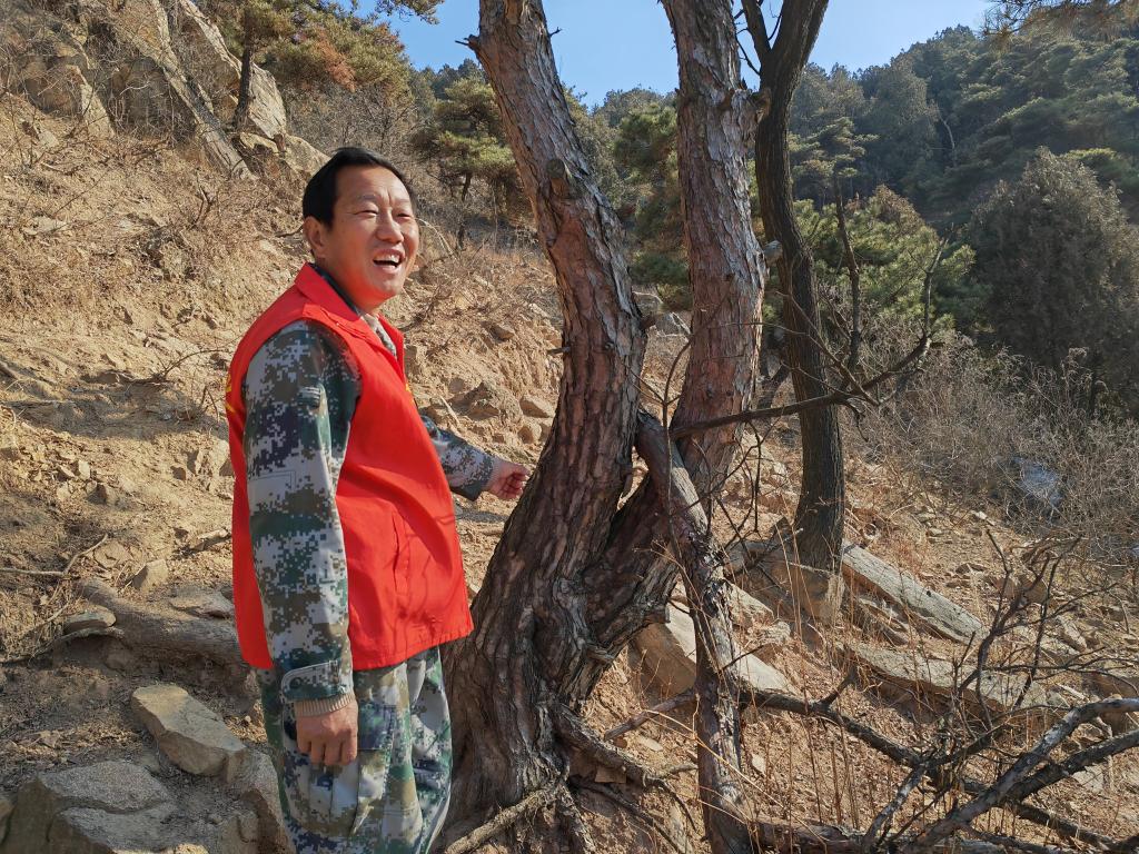 今年58歲的尹作國,負責管護山東臨沂沂南縣國有林場總場鼻子山林場尚庵寺林區(qū)。位于沂南縣張莊鎮(zhèn)上峪村以北的鼻子山林場占地4000多畝,森林覆蓋率達到90%,森林防火任務艱巨。尹作國和同事在山腳下的防火檢查站輪流值班,定期帶著水壺和干糧巡山。