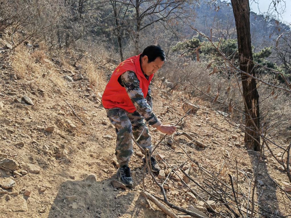 尹作國在巡山時清理枯枝。新華社記者楊文 攝