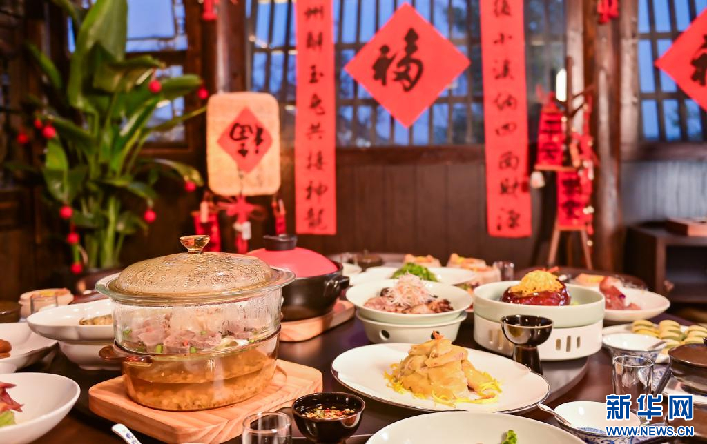 濮院時尚古鎮(zhèn)的年夜飯。新華網(wǎng)發(fā) 濮院時尚古鎮(zhèn)供圖