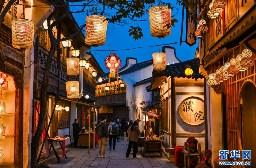 濮院寺灣街呈現(xiàn)出濃濃的新年氛圍。新華網(wǎng)發(fā) 濮院時尚古鎮(zhèn)供圖