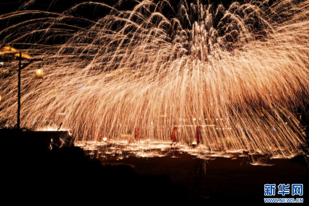 水上打鐵花表演。新華網(wǎng)發(fā) 濮院時尚古鎮(zhèn)供圖