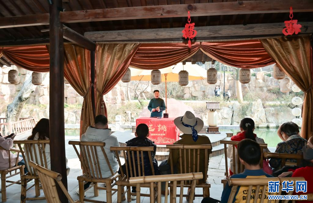 濮院瓦舍說書——桐鄉(xiāng)三跳。新華網(wǎng)發(fā) 濮院時尚古鎮(zhèn)供圖