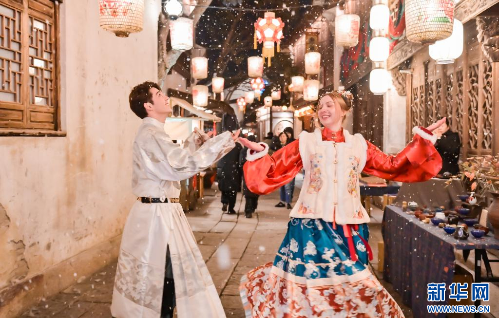 北橫街開啟“今日有雪”活動。新華網(wǎng)發(fā) 濮院時尚古鎮(zhèn)供圖