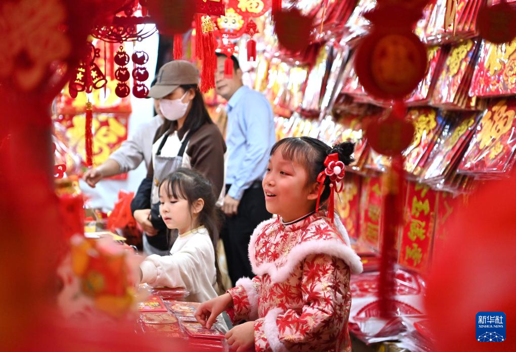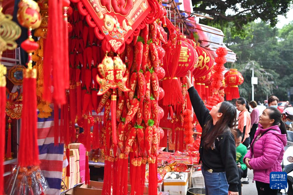 隨著春節(jié)臨近,廣西南寧迎來春節(jié)飾品銷售旺季,眾多市民采購春聯(lián)、窗花等,喜迎新春。