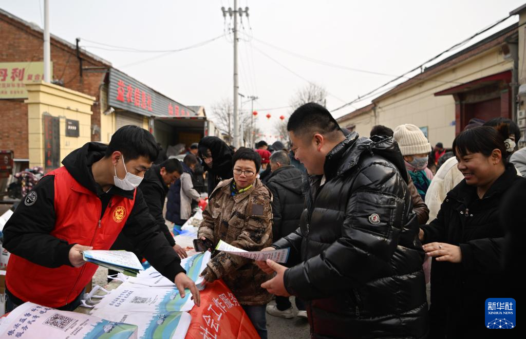 2月4日,天津市武清區(qū)英東泓業(yè)社會工作服務(wù)中心的志愿者在太子務(wù)大集上發(fā)放倡導文明行為的傳單。