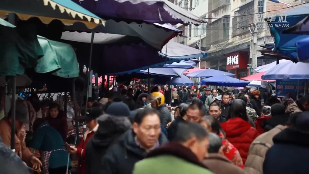 討價還價的聲音、各種吆喝聲不絕于耳。隨著購置的年貨裝滿背簍,年味兒也越來越濃,蒸騰出人間最幸福的“煙火氣”。