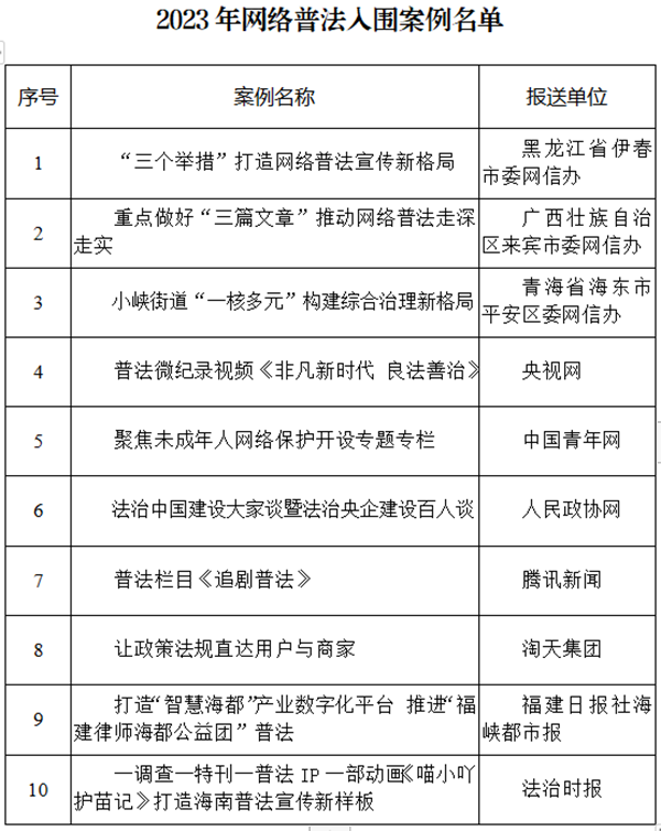 2023年網(wǎng)絡(luò)普法入圍案例名單