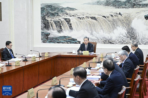 2月7日下午,十四屆全國人大常委會第十九次委員長會議在北京人民大會堂舉行,趙樂際委員長主持。新華社記者 張領 攝