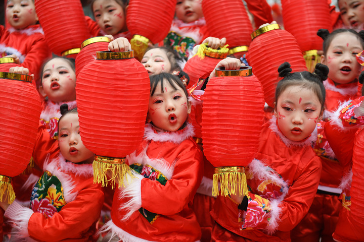 1月18日,四川省閬中市閬中古城,民間藝人和文藝工作者在表演節(jié)目歡度臘八節(jié),喜迎農歷新年。這是參演的小朋友在表演。新華社發(fā)(王玉貴 攝)