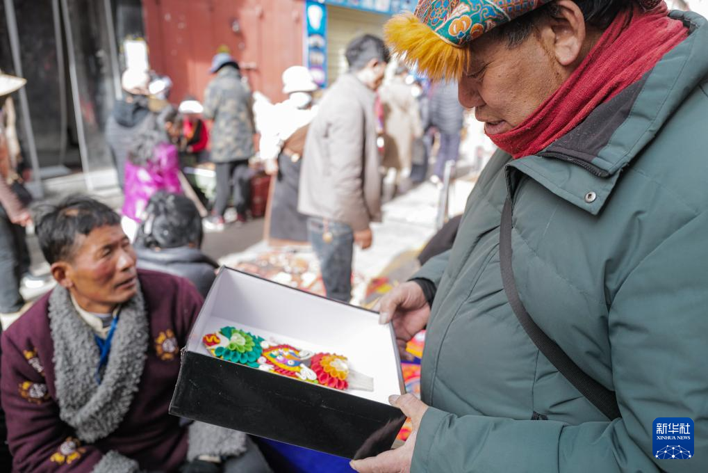 2月7日,在拉薩八廓商城,顧客在選購(gòu)酥油花。