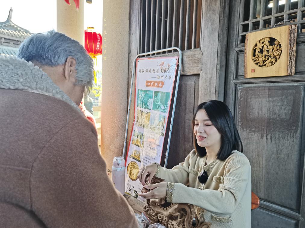 既有傳統(tǒng)的木雕蝦蟹簍,也有富有生活氣息的木雕頭簪、木雕“十二生肖”玩偶……潮州木雕非遺傳承人、“90后”陳嘉的展位上,木雕展品琳瑯滿目。她說(shuō),如今關(guān)注非遺的游客特別是年輕人越來(lái)越多,“我們現(xiàn)在對(duì)傳承非遺越來(lái)越有信心,歡迎大家到古城來(lái)過(guò)大年!”