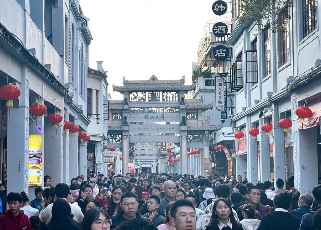 “春節(jié)前每天取號(hào)也就到50號(hào)左右,但龍年新年第一天晚上7點(diǎn)就已經(jīng)發(fā)了快200個(gè)號(hào)了?!币患遗H饣疱伒甑陠T告訴記者。牌坊街上一家飲品店的老板說(shuō):“這幾年每到節(jié)假日人都很多,而且游客每年喜歡的都不一樣。之前流行竹筒奶茶,今年改成帶冒煙小茶壺的奶茶了,我們會(huì)相應(yīng)做一些改變。”