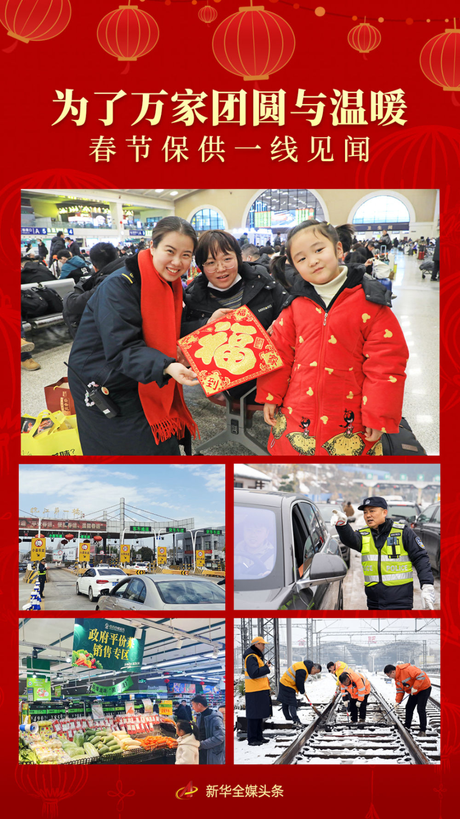 春節(jié)是中華民族最為隆重的節(jié)日。為了萬(wàn)家的團(tuán)圓與溫暖,各地各部門積極行動(dòng),許多干部、職工奮戰(zhàn)在保供第一線:有的千方百計(jì)讓群眾回家路更便捷,有的“24小時(shí)待命”確保用水、用氣、用電有保障,有的全力保障生活必需品供應(yīng)充足……