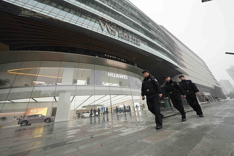 圖為湖北省武漢市公安局武昌區(qū)分局梅苑派出所民警正在武商夢(mèng)時(shí)代廣場(chǎng)外圍開展步巡。孫遜/攝