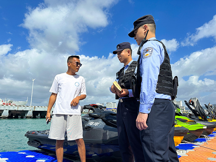 圖為三亞港海岸派出所聯(lián)合海事局和執(zhí)法局對(duì)海上娛樂(lè)項(xiàng)目開(kāi)展聯(lián)合檢查