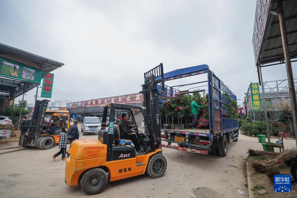 2月20日,在位于金華市金東區(qū)澧浦鎮(zhèn)的苗木市場內(nèi),商戶在裝車果苗。