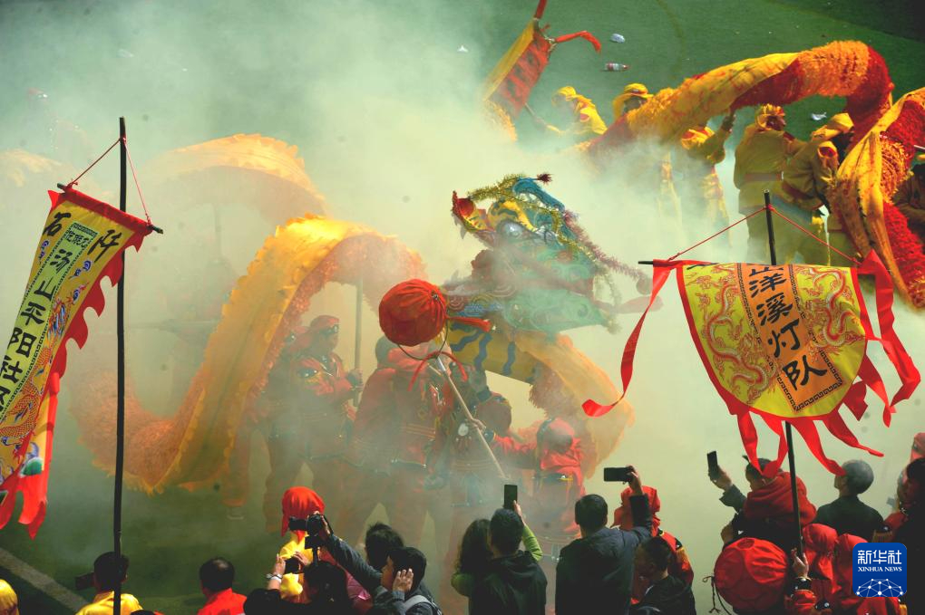 元宵佳節(jié)臨近,人們進(jìn)行傳統(tǒng)舞龍表演,熱熱鬧鬧迎元宵。