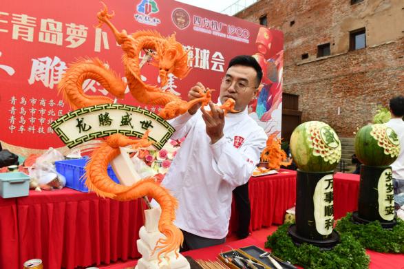 雕刻大師現(xiàn)場展示蘿卜雕刻絕活。崔冬妮攝