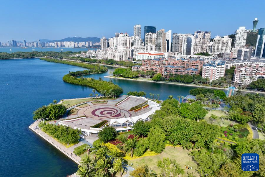 這是1月24日拍攝的廈門筼筜湖白鷺洲公園及周邊城市景觀(無人機照片)。新華社記者 姜克紅 攝