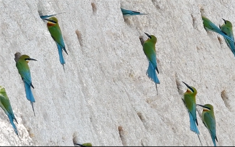 栗喉蜂虎,國(guó)家二級(jí)保護(hù)動(dòng)物,被稱為中國(guó)最美麗的鳥類之一。作為夏候鳥,每年4月份左右,栗喉蜂虎會(huì)“組團(tuán)”來(lái)到廈門五緣灣栗喉蜂虎市級(jí)自然保護(hù)區(qū)筑巢繁衍。