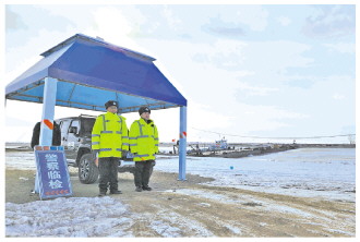 1月下旬正午時分,嫩江邊氣溫接近零下20℃,《法治日報》記者身上厚重的冬裝幾分鐘就被江邊的寒風吹透。一座簡易浮橋橋頭遮陽棚旁停著一輛噴有“油田特警”字樣的警車,黑龍江省大慶市公安局油田分局的特警隊員正巡查著出市車輛,截斷大慶被盜原油外運通道,這是油田公安分局護衛(wèi)石油安全的重要一環(huán)。