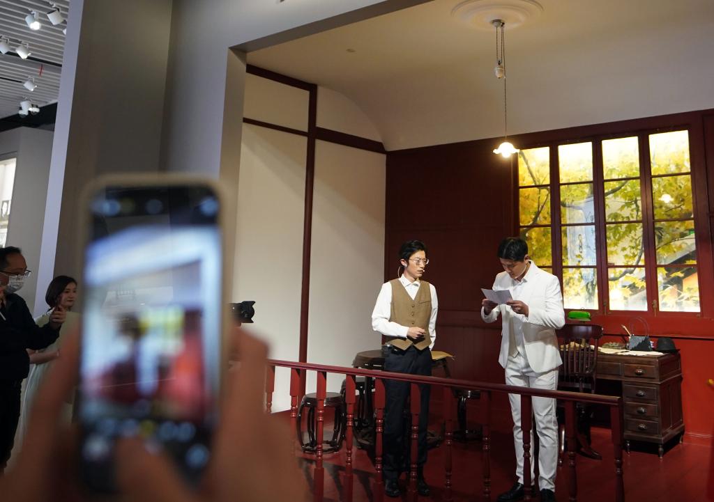 2023年5月18日晚,中共一大紀(jì)念館原創(chuàng)的情景黨課《又見新青年》在展廳內(nèi)實景演出。自2021年中國共產(chǎn)黨成立100周年之際全新開放以來,中共一大紀(jì)念館對紅色文化的創(chuàng)新傳播正不斷“圈粉”年輕人。新華社記者 劉穎 攝