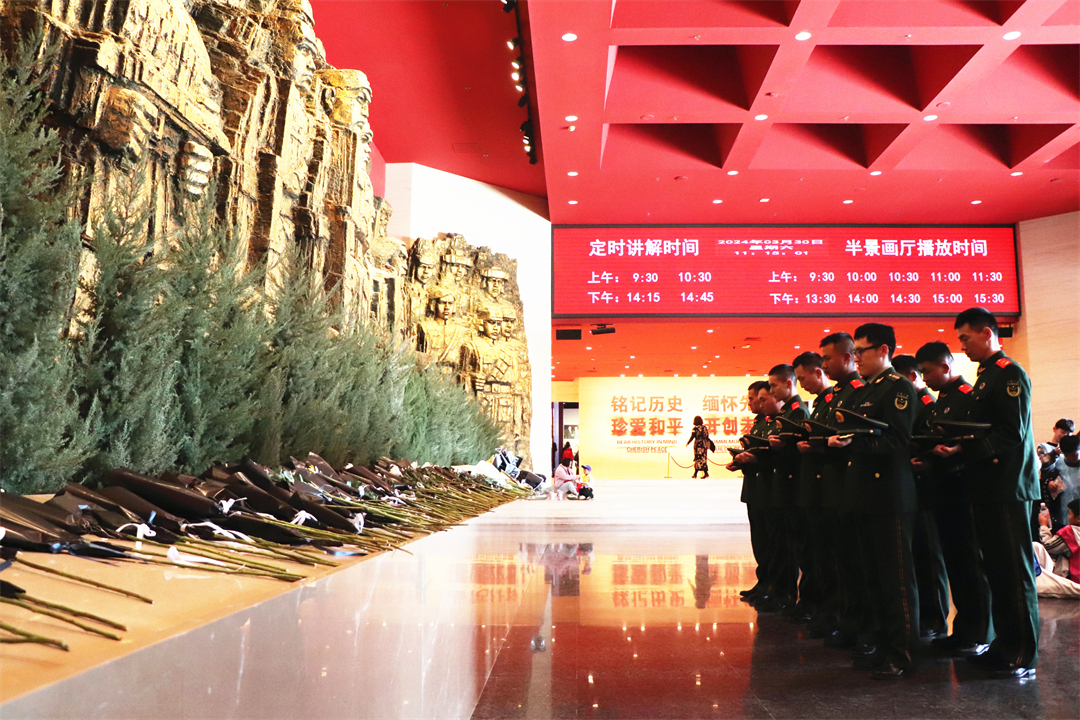 在抗日戰(zhàn)爭紀念館紀念哀思抗日先烈。劉文龍 攝
