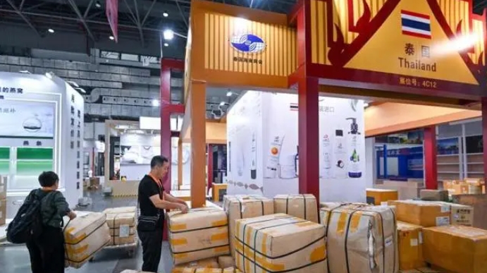4月10日,第四屆中國國際消費(fèi)品博覽會(huì)參展物品陸續(xù)上架。圖為來自泰國的參展商整備參展商品。中新社記者 駱云飛 攝