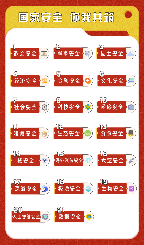 2024年4月15日,是第九個(gè)全民國(guó)家安全教育日,今年的活動(dòng)主題是“總體國(guó)家安全觀·創(chuàng)新引領(lǐng)10周年”。