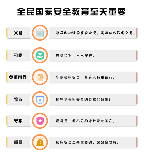 全民國(guó)家安全教育日的設(shè)立,旨在宣傳普及國(guó)家安全知識(shí),樹(shù)立全民安全理念,提升切實(shí)維護(hù)國(guó)家安全的使命感、責(zé)任感。