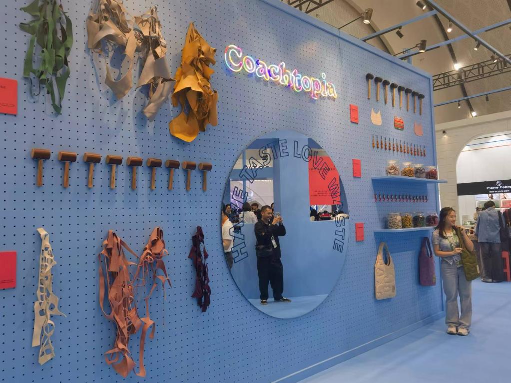 “蔻馳之城”展臺展示其循環(huán)工藝。新華社記者趙葉蘋攝