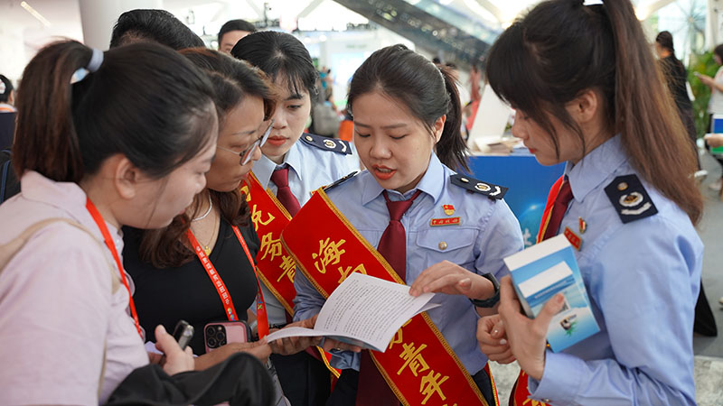 “歡迎您來到消博會的稅務(wù)咨詢站,請問您想了解哪方面的內(nèi)容呢?”在海南國際會展中心登錄大廳,醒目的藍色柜臺和身著稅務(wù)制服的志愿者們,吸引了眾多參展客商的目光。