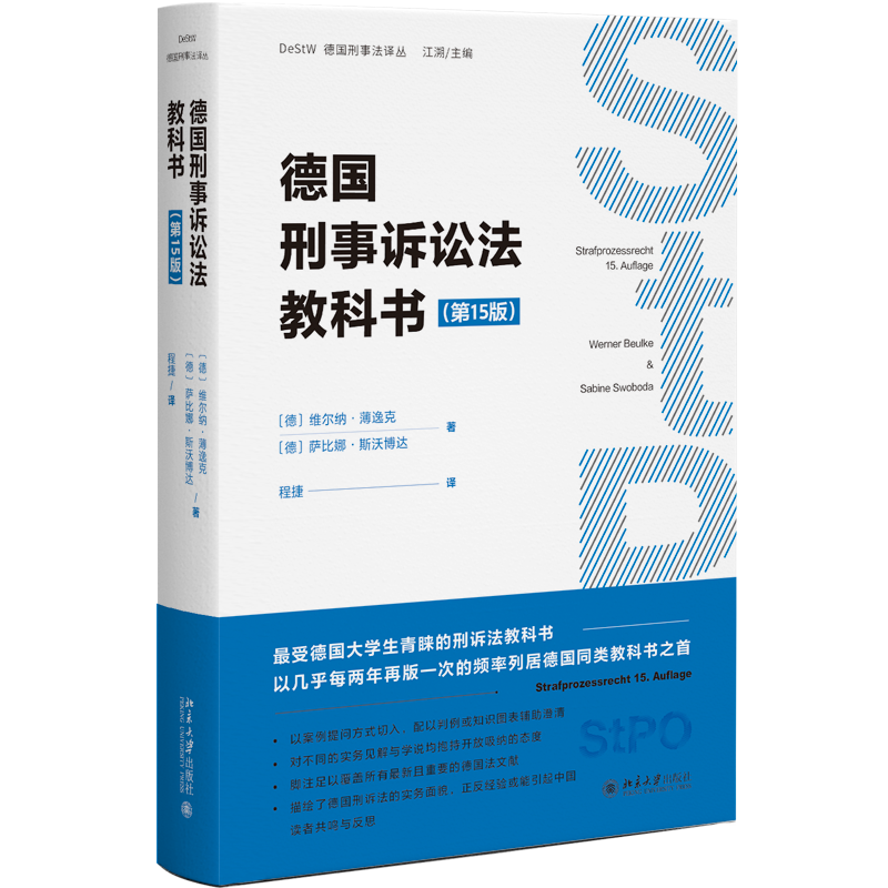 本書簡介:維爾納·薄逸克教授所著的《德國刑事訴訟法教科書》是德國影響力最大的教科書。本書涵蓋刑事訴訟法的總論和分論部分,其中總論部分包括基本原理、基本原則以及管轄、訴訟主體、回避、刑事追訴專門機關職權(quán)、被告人基本權(quán)利、辯護、證據(jù)法制度和原理、證據(jù)排除法則、強制措施尤其是羈押、訴訟要件和訴訟行為等全面的基本制度和理論范疇。在總論部分涉及到了許多中國刑事訴訟法尚屬研究空白,甚至完全未知的領域,例如刑事訴訟行為理論,訴訟客體理論、自主性證據(jù)禁止理論等。其研究方法更是從德國盛行的法教義學研究方法入手,即每一個理論議題都不脫離法條的解釋技術(shù)。本書特點在于并不停留于法條或制度介紹,而是深入規(guī)范之中,完整解釋了德國刑事訴訟法的設計邏輯和適用技術(shù),對我國審判方式改革具有重要參考價值。