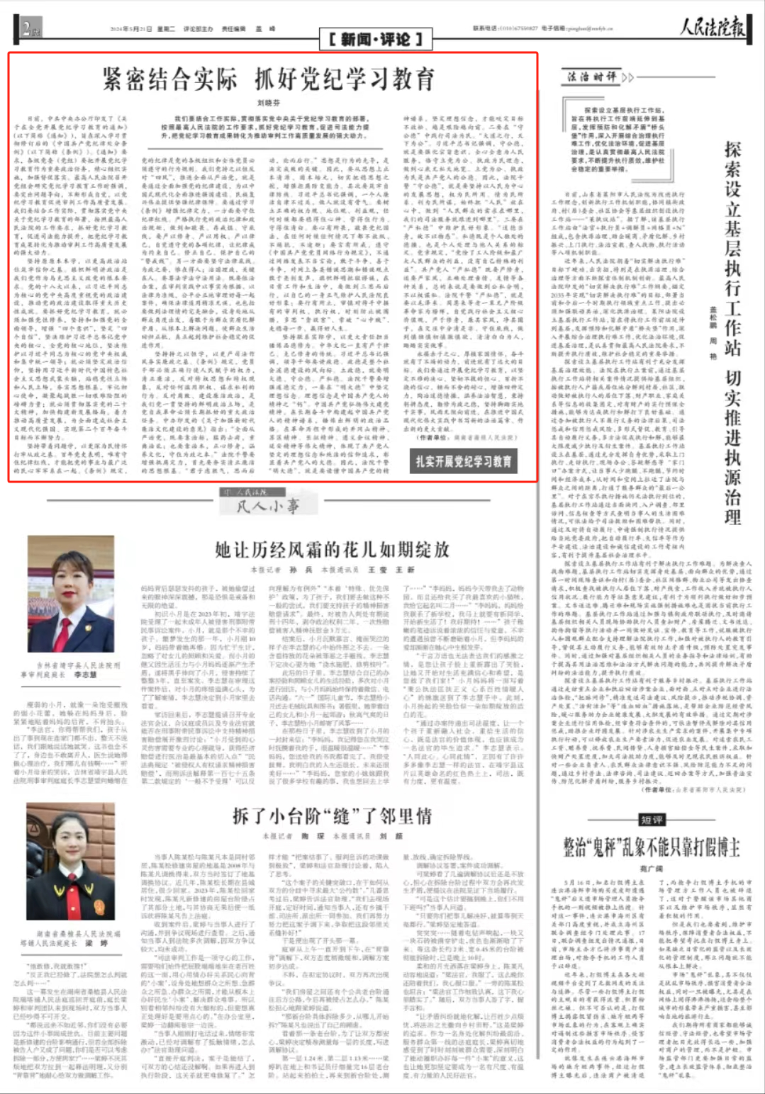 堅持帶著問題學(xué),以更深為民情懷打牢從政之基。百年黨史表明,唯有守住紀(jì)律紅線,才能把黨的事業(yè)與最廣泛的民心牢牢系在一起?!稐l例》規(guī)定,黨的紀(jì)律是黨的各級組織和全體黨員必須遵守的行為規(guī)則。我們黨持之以恒反對“四風(fēng)”,推進全面從嚴(yán)治黨,就是要通過全面加強黨的紀(jì)律建設(shè),為以中國式現(xiàn)代化全面推進強國建設(shè)、民族復(fù)興偉業(yè)提供堅強紀(jì)律保障。要通過學(xué)習(xí)《條例》增強紀(jì)律定力,一方面要守住紀(jì)律紅線。嚴(yán)格執(zhí)行黨的政治紀(jì)律和政治規(guī)矩,做到知敬畏、存戒懼、守底線,要嚴(yán)以修身、嚴(yán)以用權(quán)、嚴(yán)以律己,自覺遵守黨的各項紀(jì)律,讓紀(jì)律成為約束自己、修正自己、保護自己的“警戒線”。另一方面要堅守法律底線。為政之要,惟在得人;治國理政,關(guān)鍵在人。要尊法學(xué)法守法用法。既要依法辦案,在審判實踐中以事實為根據(jù)、以法律為準(zhǔn)繩,公平公正地審理好每一起案件,確保法律適用精準(zhǔn)無誤,也包括要做到法理情的完美融合,設(shè)身處地從群眾角度出發(fā),著眼于為群眾實質(zhì)化解矛盾、從根本上解決問題,使群眾生活回歸正軌,真正起到維護社會穩(wěn)定的促進作用。