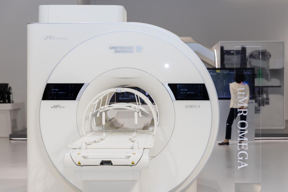 在位于上海市嘉定區(qū)的聯(lián)影集團拍攝的75cm超大孔徑3.0T磁共振。新華社記者 王翔 攝(5月24日攝)