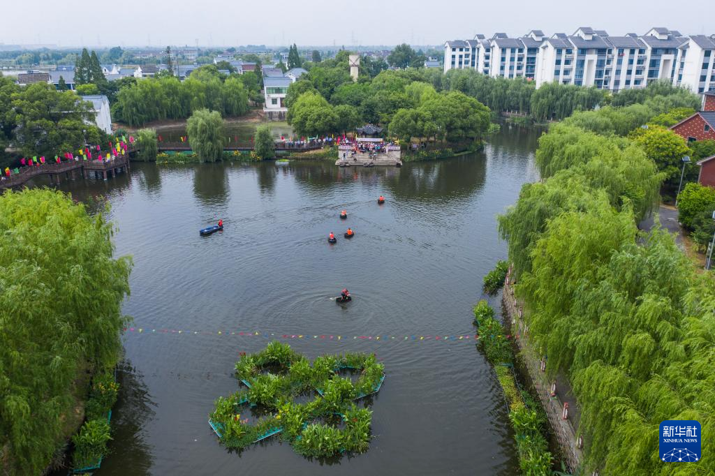 當(dāng)日,浙江省湖州市吳興區(qū)東林鎮(zhèn)舉辦“慶端午 劃菱桶”水鄉(xiāng)端午趣味民俗活動(dòng),來自東林鎮(zhèn)各村的村民們在泉益村參加了水鄉(xiāng)劃菱桶比賽、荷塘釣小龍蝦、做艾草花束、包粽子等端午趣味民俗活動(dòng),在初夏時(shí)節(jié)呈現(xiàn)江南水鄉(xiāng)特有的迎端午氣氛。