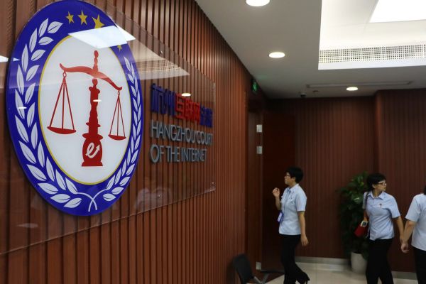 圖為2017年8月18日,中國(guó)首家互聯(lián)網(wǎng)法院——杭州互聯(lián)網(wǎng)法院在浙江杭州正式掛牌。(視覺(jué)中國(guó))