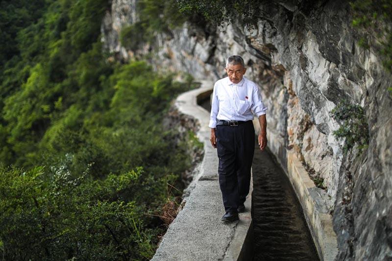 他帶領(lǐng)村民,歷時(shí)30余年,在懸崖絕壁上開鑿出一條主渠長7200米、支渠長2200米的“生命渠”;他用實(shí)干兌現(xiàn)誓言,為改善山區(qū)群眾用水條件、實(shí)現(xiàn)脫貧致富作出突出貢獻(xiàn);他一心為民、埋頭苦干、百折不撓……