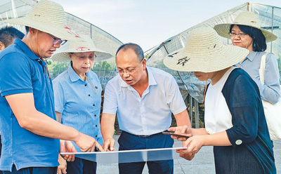 2022年7月,徐利民(右三)和相關(guān)專家實(shí)地察看上山遺址博物館選址區(qū)塊。張國萍 攝