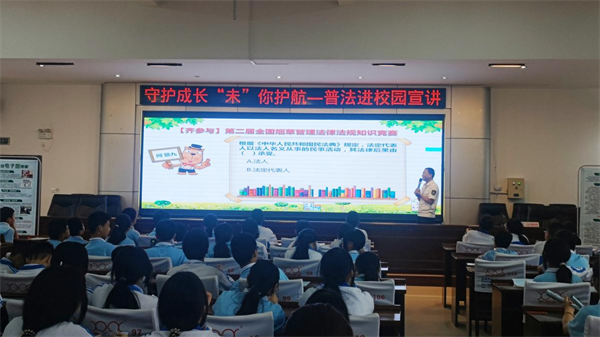深入校園,護未行動。瑞昌市煙草專賣局深入轄區(qū)多所中學,以“守護成長、為你護航”為主題,開展普法進校園宣講活動。在活動現(xiàn)場,利用PPT大屏幕投屏形式引導廣大師生參與競賽答題活動,采取以案釋法、漫畫說法等形式生動宣講《中華人民共和國煙草專賣法》《中華人民共和國未成年人保護法》和《電子煙管理辦法》,為進一步守護未成年人身心健康,營造綠色健康校園環(huán)境奠定堅實基礎(chǔ)。