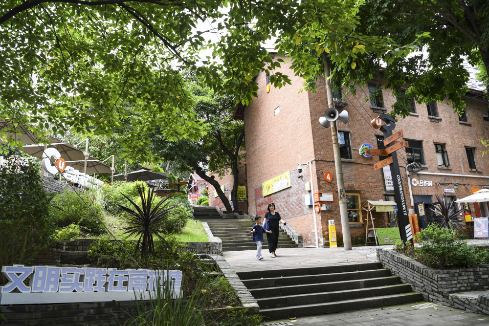 ↑這是7月15日拍攝的重慶市江北區(qū)五里店街道鶯花巷合作村青年國際社區(qū)景象。