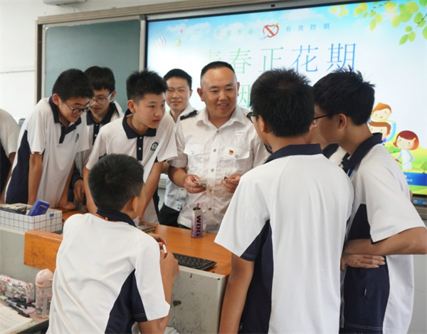 “你們看,這些形狀新奇的奶茶杯、可樂罐就是非法電子煙,里面往往添加了大量香精香料,有些不法分子甚至還會將毒品成分混在煙油中,人在吸食后會迅速上頭,對身體產生巨大傷害?!苯淌依?,縉云縣煙草專賣局的普法志愿者正在為壺濱中學的同學們耐心講解奶茶杯、可樂罐等非法電子煙的外觀、成分、危害,引導學生提高警惕,遠離電子煙傷害。
