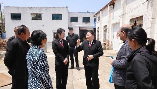 圖為今年四月二十六日,江蘇省揚州市江都區(qū)人民法院邵伯人民法庭副庭長胡買梅(右三)就一起排除妨害糾紛案件向當事人釋法明理。