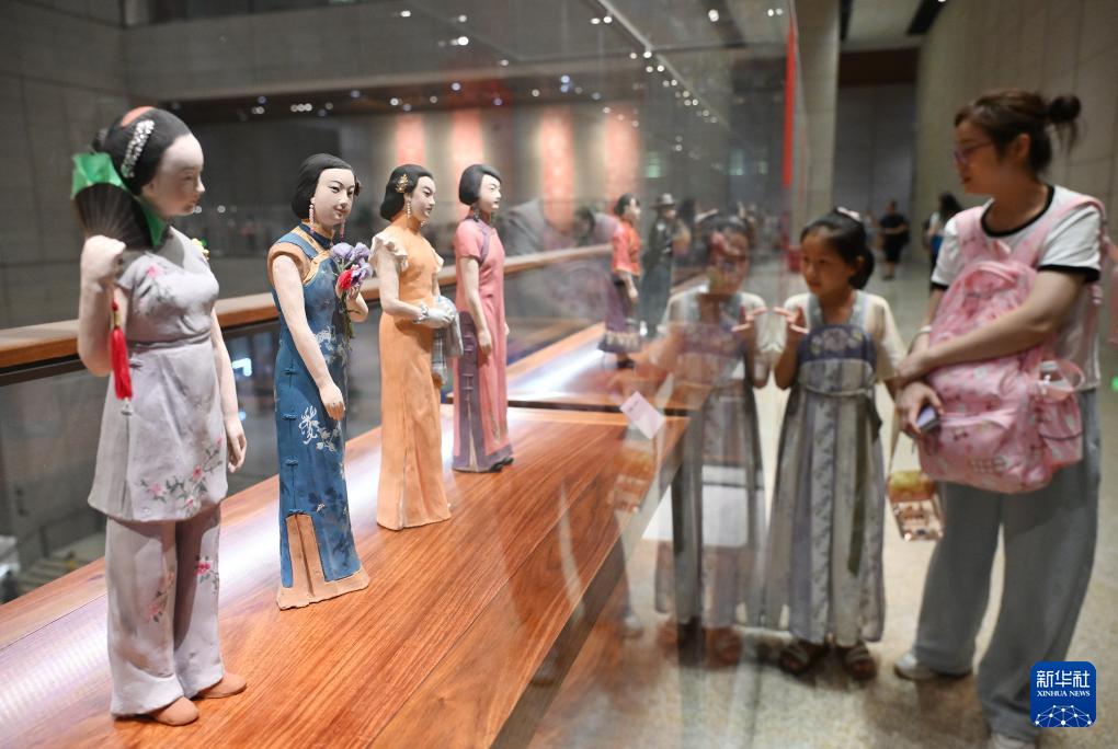 8月7日,中國(guó)工藝美術(shù)館展廳舉行的中華歷代服飾泥塑展吸引游客駐足觀(guān)看。