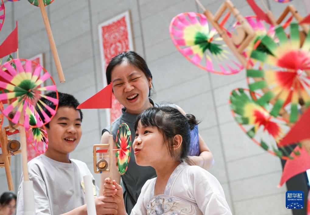 8月7日,小朋友在非遺市集上挑選風(fēng)車(chē)玩具。