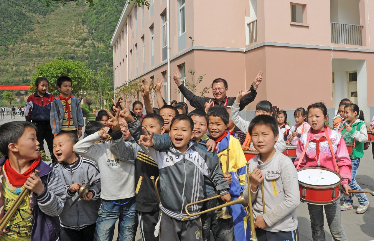 2011年4月,參加第四屆全國專家博客筆會,采訪四川災(zāi)后重建成果時(shí)與孩子們在一起。