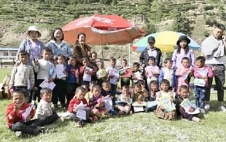 圖為四川省若爾蓋縣人民法院督察室主任更措(后排左二)與包村干部陪同塔爾村小朋友過(guò)“六一”兒童節(jié),并以籌集的資金為小朋友購(gòu)買(mǎi)學(xué)習(xí)用品和生活物資。資料照片