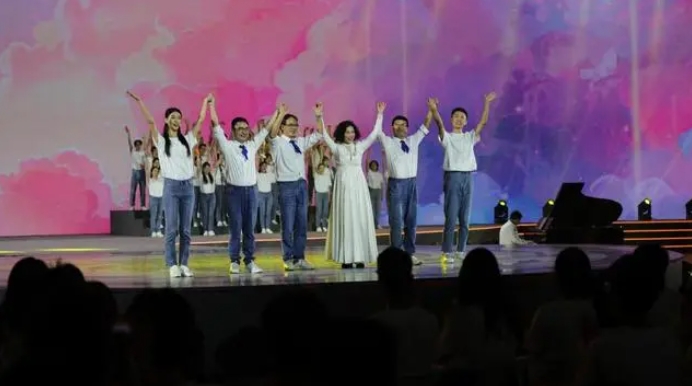 電子科技大學學生合唱團與退休教職工組成的銀杏合唱團共同演繹《一路生花》 楊曉恒攝