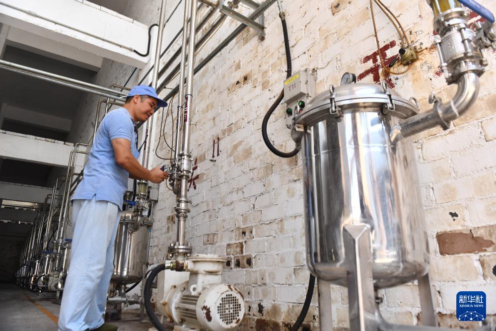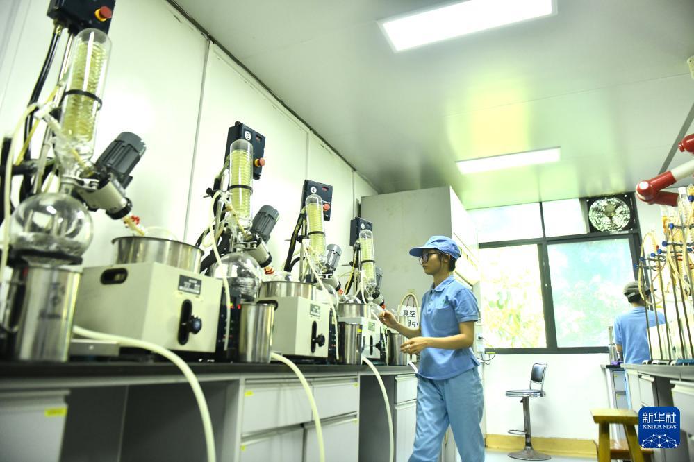 在廣西仙草堂制藥有限責任公司青蒿素提煉車間,技術人員在作業(yè)(8月27日攝)。