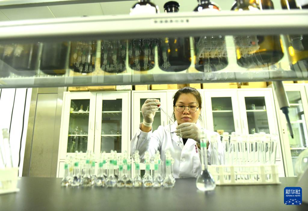 在廣西仙草堂制藥有限責任公司,技術人員在檢測青蒿素(8月27日攝)。